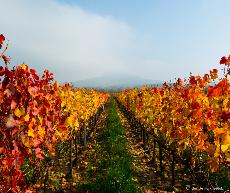 De herfst. Het seizoen waarin de wijngaard tot leven lijkt te komen én afscheid neemt tegelijk. De dagen worden korter, de lucht ruikt naar gevallen bladeren, en tussen de rijen druiven hangt een bijna feestelijke spanning: het is oogsttijd.